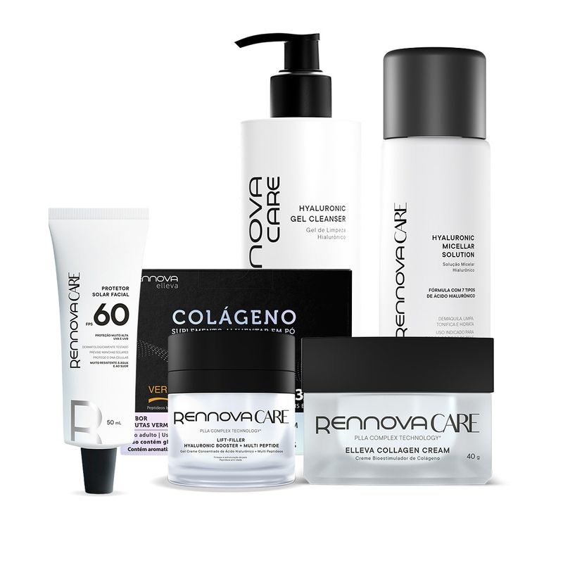 O Kit Elleva & Regenera é a solução definitiva da Rennova Care para uma pele renovada. Ele atua de forma abrangente no rejuvenescimento e na firmeza, promovendo hidratação profunda e regeneração celular intensa.